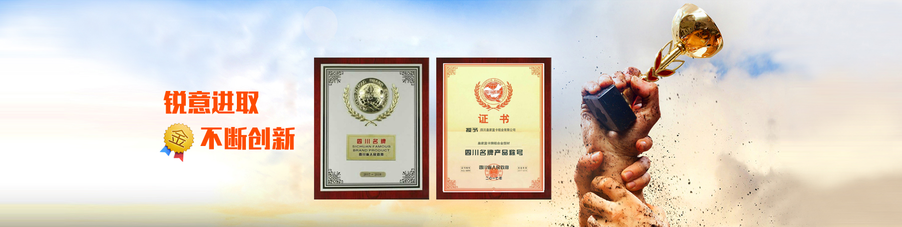 公司占地面積100畝,注冊商標為“皇家藍卡”,曾獲“四川名牌產品稱號”、“高新技術企業證書”和四川省工程建設地方標準“參編單位”證書,年生產鋁合金型材能力 50000 噸
